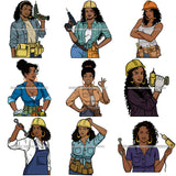 Bundle 9 Afro Handyman Woman Feminism Worker Female Engineer Construction Repair Business Maintenance SVG Cutting Files For Silhouette and Cricut