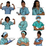 Bundle 9 Afro Female Nurse Medical Doctor Hospital Woman Health Healthcare Clinic SVG Cutting Files For Silhouette and Cricut