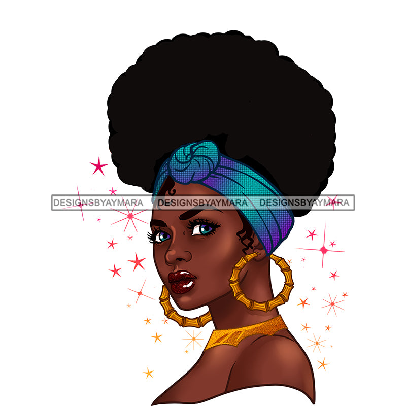 Gorgeous Black Woman Portrait Confident Earrings Headband Puffy Afro Hairstyle SVG JPG PNG Vector Clipart Cricut Silhouette Cut Cutting