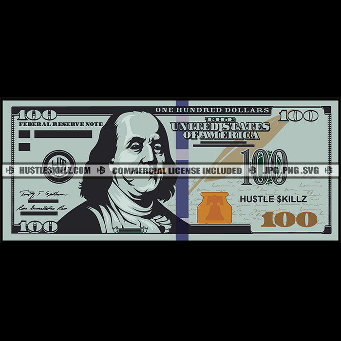 Hundred Dollar Design Laser Cut Files Wall Sticker Engraving Decal Silhouette Template Black And White Background Design Element Cash Note Bank Cash SVG JPG PNG Vector Clipart Cricut Cutting Files