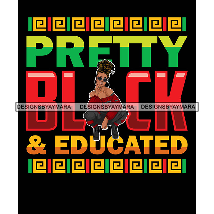 Pretty Afro Woman Squatting Educated Updo Hairstyle Rasta Black Background SVG JPG PNG Vector Clipart Cricut Silhouette Cut Cutting