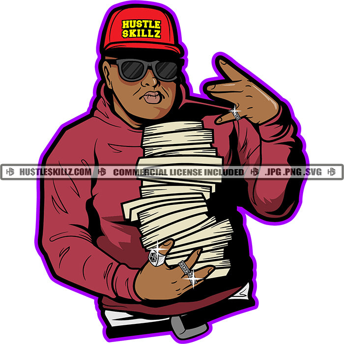 0% Small Talk 200% Grind They Talk. We Hustle. Quote Color Vector African American Gangster Man Holding Money Design Element Melanin Commercial Man Wearing Cap Hustler Hustling SVG JPG PNG Vector Clipart Cricut Cutting Files