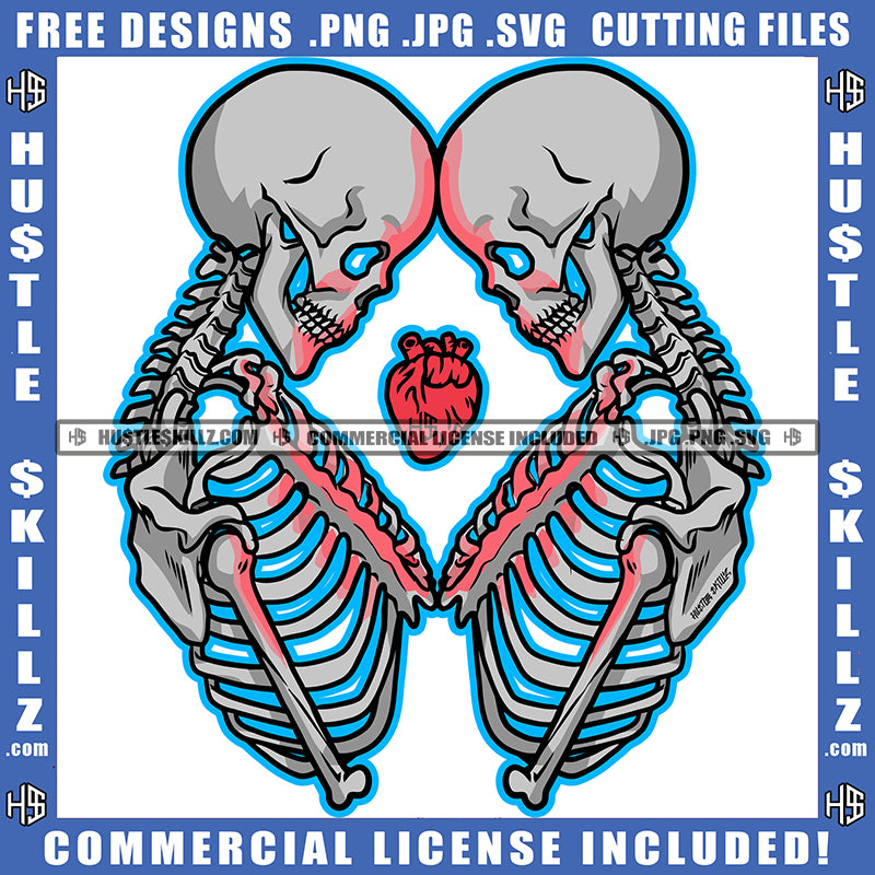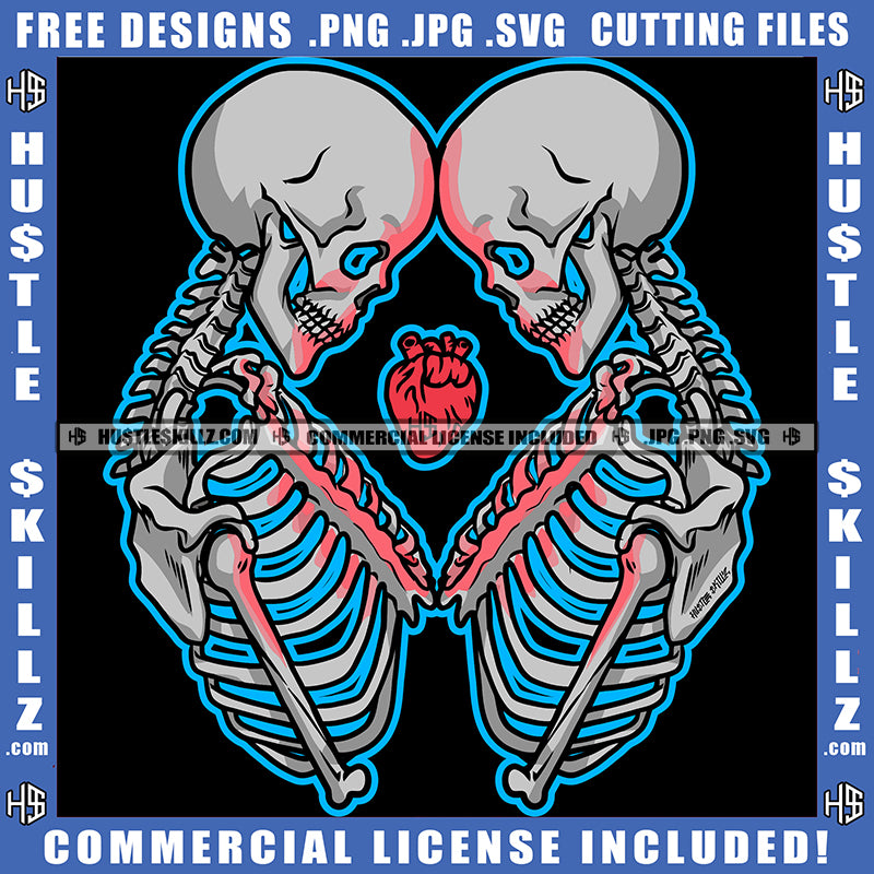 Skull Skeleton Head And Body Design Element Heart Logo SVG JPG PNG Vector Clipart Cricut Cutting Files