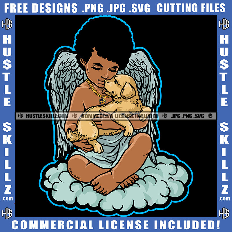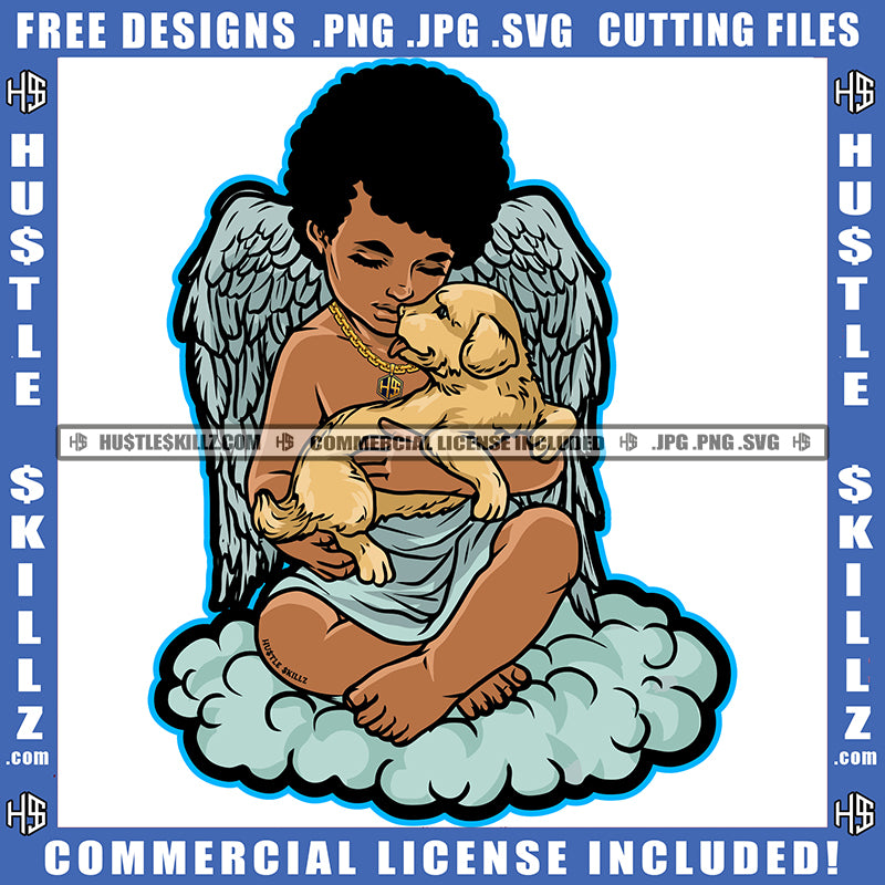 Young Child Angle Holding Dog Wings Design Element Puppy Brown Body Child Angle Afro Hair SVG JPG PNG Vector Clipart Cricut Cutting Files