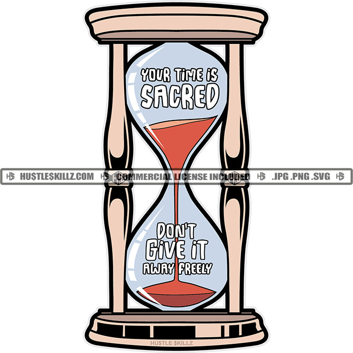 Your Time Is Sacred Don't Give It Away Preely Color Quote House Glass Time Timer Clock Hour Minutes Grind Hustle Vector White Background Design Element