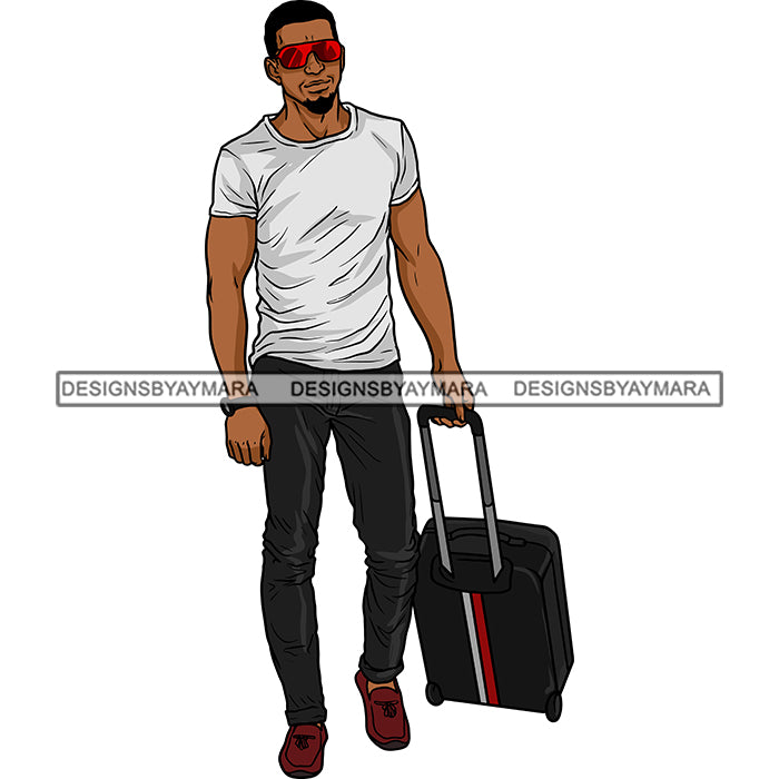 Handsome Sexy Afro Man Sunglasses Spinner Wheel Luggage Short Hairstyle SVG JPG PNG Vector Clipart Cricut Silhouette Cut Cutting