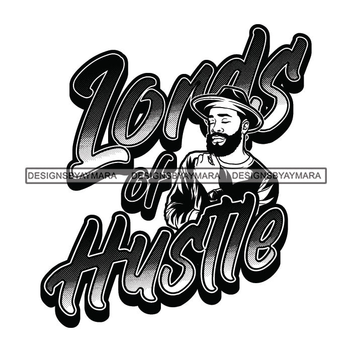 Sexy Black Man Hustle Quote Confident Watch Hat Long Sleeve T-shirt Fashion Style B/W SVG JPG PNG Vector Clipart Cricut Silhouette Cut Cutting