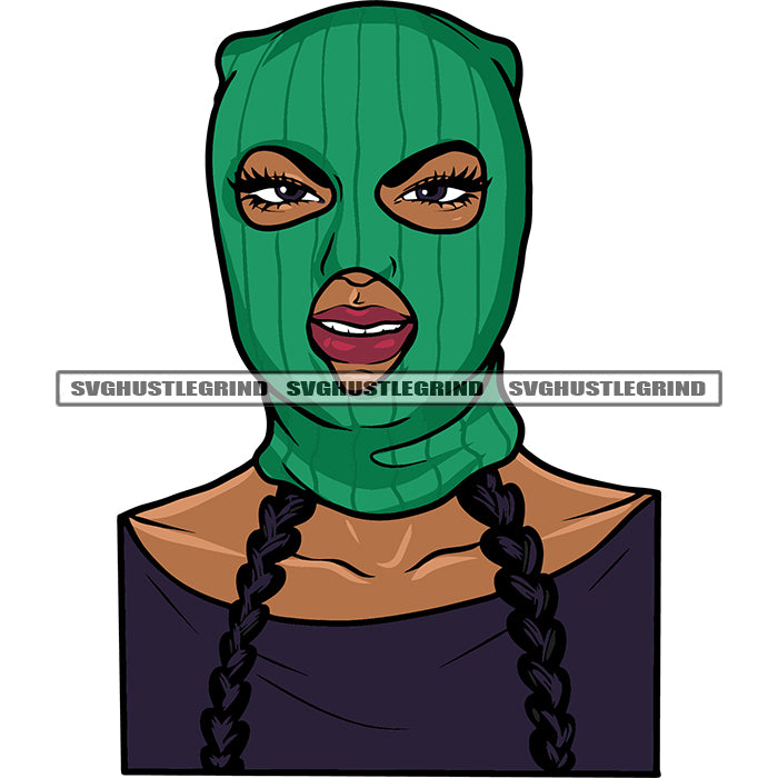 Smile Face African American Woman Wearing Ski Mask Afro Short Hairstyle Design Element White Background Gangster Woman SVG JPG PNG Vector Clipart Cricut Silhouette Cut Cutting