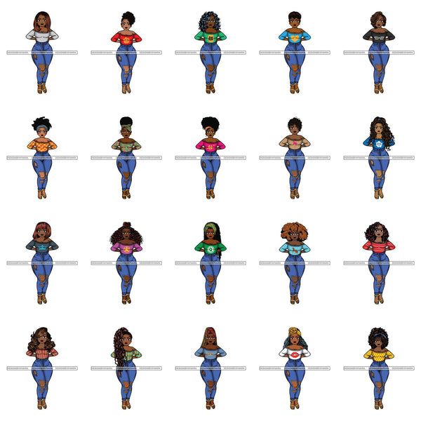 Bundle 20 Afro Lola Sassy Exotic Curvy Thick Goddess .SVG Cutting Files For Silhouette and Cricut and More!