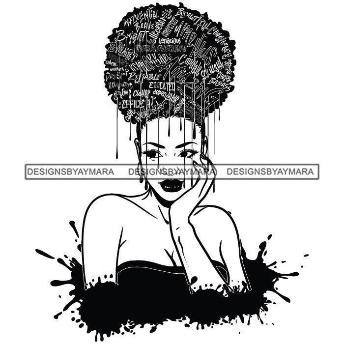 Black Diva Goddess Friendly Motivational Hair Quotes Dripping Splash B/W SVG JPG PNG Vector Clipart Cricut Silhouette Cut Cutting