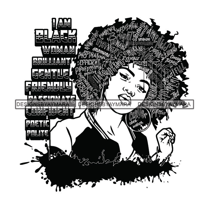 Black Diva Goddess Motivational Hair Quotes I Am Educated Dripping Splash B/W SVG JPG PNG Vector Clipart Cricut Silhouette Cut Cutting