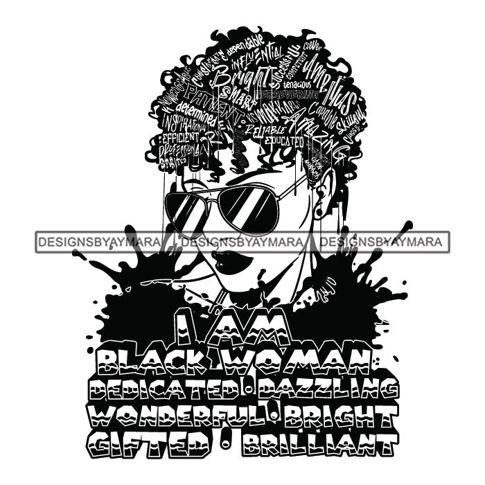 Black Diva Goddess Motivational Hair Quotes I Am Peaceful Dripping Splash B/W SVG JPG PNG Vector Clipart Cricut Silhouette Cut Cutting
