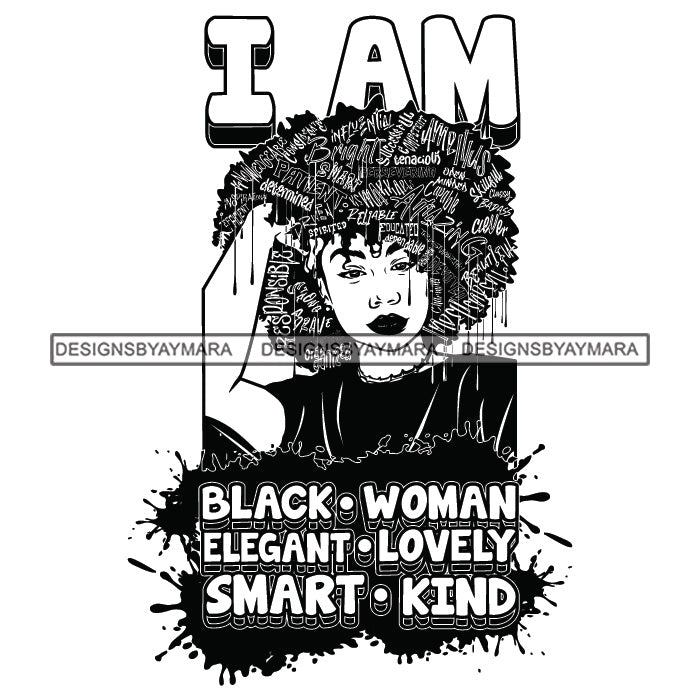 Black Diva Goddess Motivational Hair Quotes I Am Talented Dripping Splash B/W SVG JPG PNG Vector Clipart Cricut Silhouette Cut Cutting