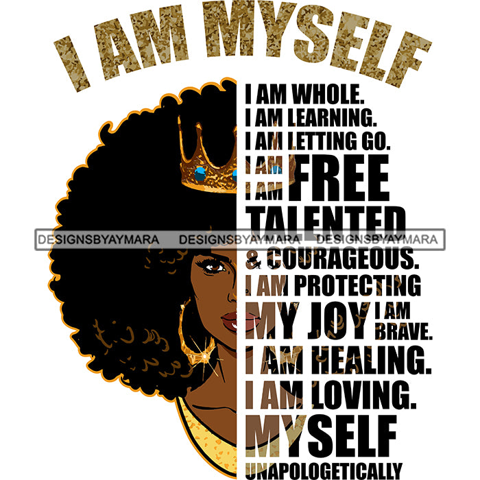 Black Diva Half Face Empowering Quotes I Am Powerful White Background SVG JPG PNG Vector Clipart Cricut Silhouette Cut Cutting
