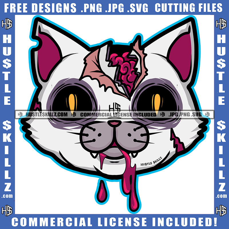 Cartoon Scarface Cat Head Break Zombie Face Design Element Melanin Cat Smile Face Blood Dripping Hustler Hustling SVG JPG PNG Vector Clipart Cricut Cutting Files