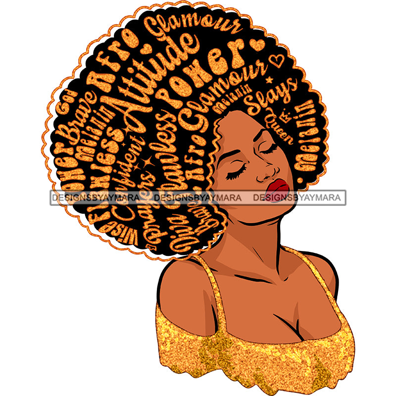 Black Queen In Gold Glitter With Big Afro Words Head Back JPG PNG Clipart Cricut Silhouette Cut Cutting