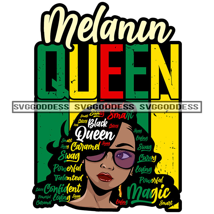Black Queen Words In Hair Red Black Green SVG JPG PNG Vector Clipart Cricut Silhouette Cut Cutting