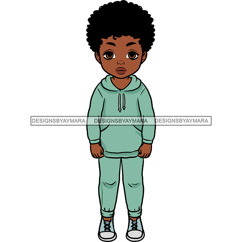 Cute Little Black Boy In Sweat Suit JPG PNG Clipart Cricut Silhouette Cut Cutting