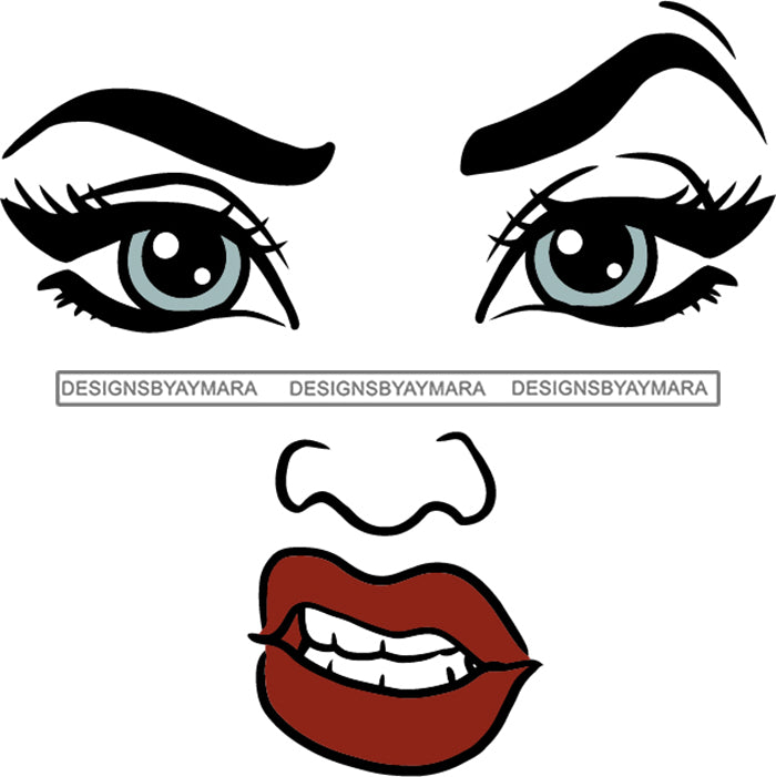 Face Green Eyes Wide Open Red Snarling Lips SVG JPG PNG Vector Clipart Cricut Silhouette Cut Cutting1