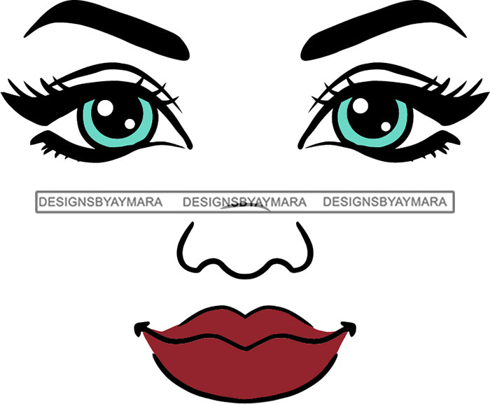 Face Blue Eyes Wide Open Red Lips Smiling SVG JPG PNG Vector Clipart Cricut Silhouette Cut Cutting1