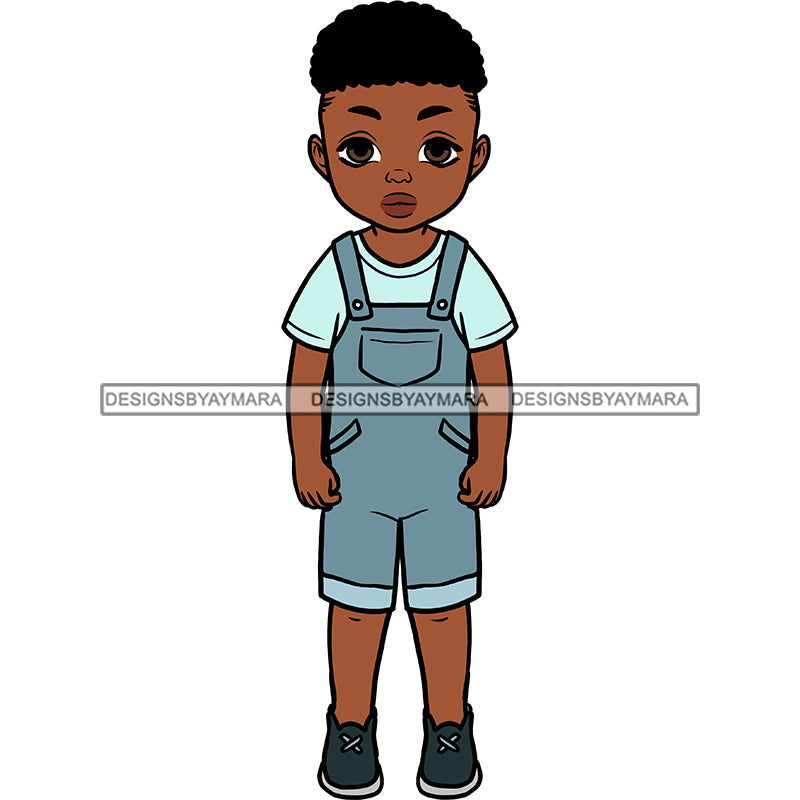 Cute Little Black Boy In Overalls Afro JPG PNG Clipart Cricut Silhouette Cut Cutting