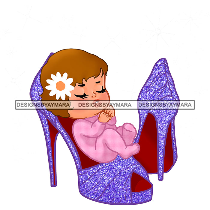Cute Caucasian Baby Girl Sleeping In Purple Heels Shoes JPG PNG Clipart Cricut Silhouette Cut Cutting