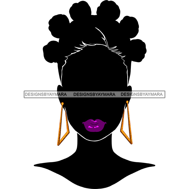 Black Silhouette Woman Face Purple Lips Afro Puffs JPG PNG Clipart Cricut Silhouette Cut Cutting