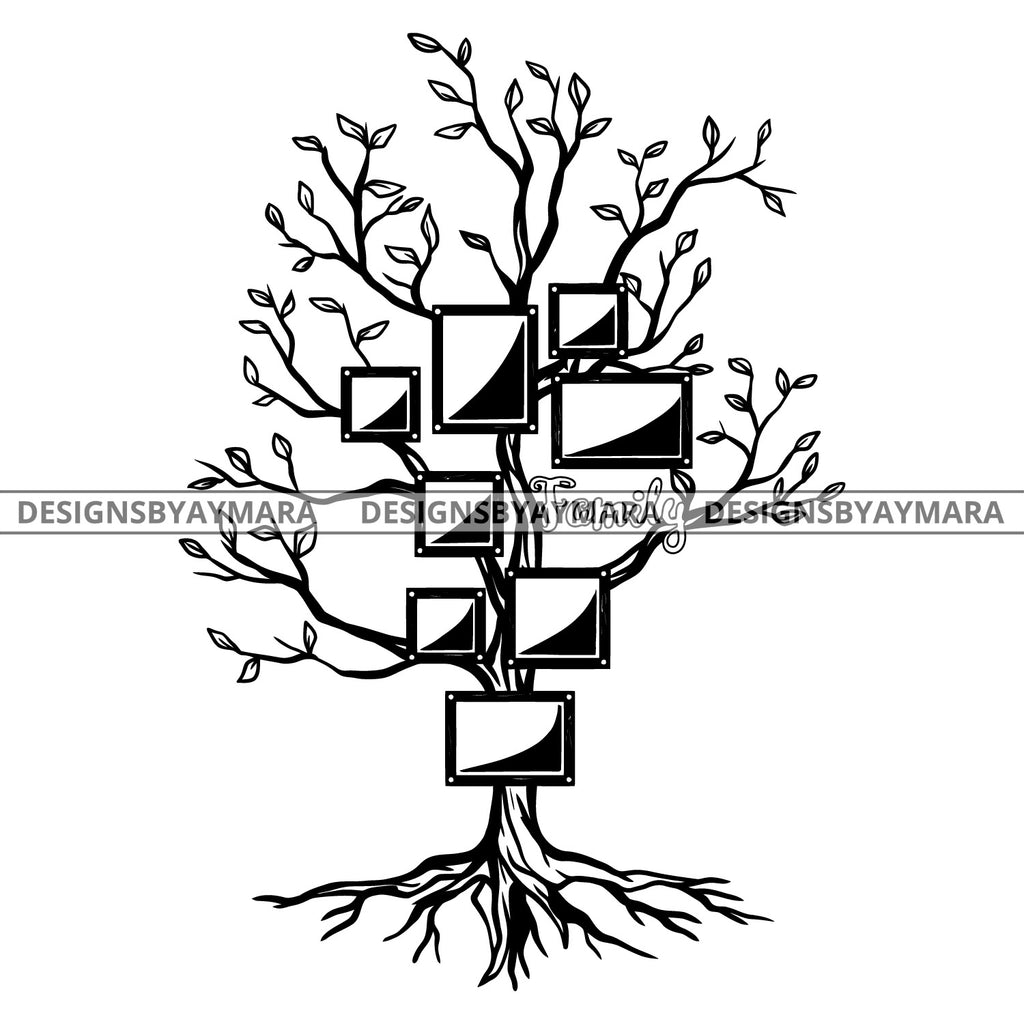 Family Tree History Frames Pictures Love Generation B/W SVG JPG PNG Vector Clipart Cricut Silhouette Cut Cuttingn